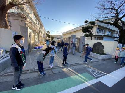元気にあいさつすると寒さも気になりません。子どもたちの熱いやる気がうれしい朝です。
