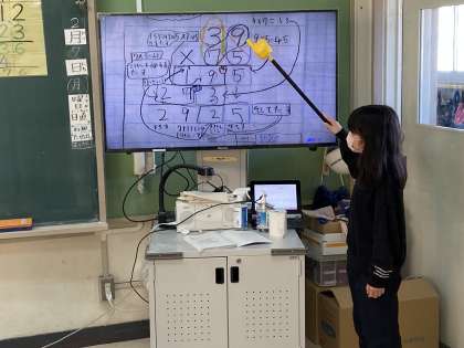 39×75のやり方をまず自分で考え、友達と交流し確かめます。