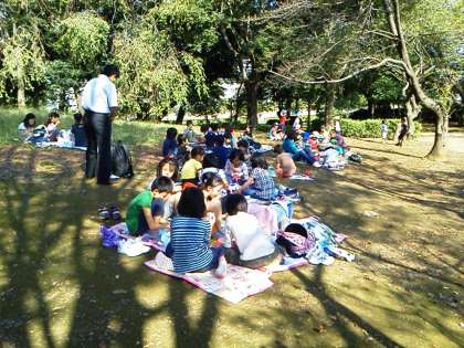 午前中最後の見学場所は、次大夫堀公園です。古民家の説明を聞いたり、自由に見学したりしました。そして、楽しみにしていたお弁当を食べました。