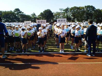 今日は、絶好の天気にめぐまれての運動会になりました。開会式が始まりいよいよ幕あけです。国士舘大学のお手本も見せてくれました