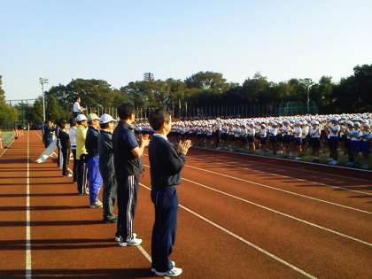 午前午後の競技が終わり最後の大なわです。そして、417回という記録を出しました。頑張りました。閉会式をして学校へ戻ります。