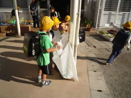 11月1日から登校時ゴミ拾いが始まりました。自宅から学校に来るまでゴミ拾いをして通学路の美化に努めました。校門では、担当学年によるあいさつ運動も行われ、「おはようございます」の元気な声がひびいていました。