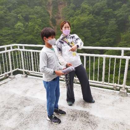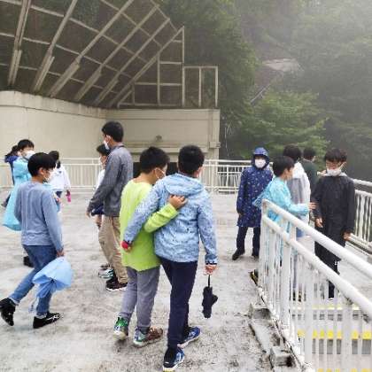 みんな滝の大きさにビックリしていました。華厳の滝のとは人懐っこい!