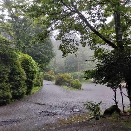 起床です。霧雨が降っているので朝会は部屋で行います。