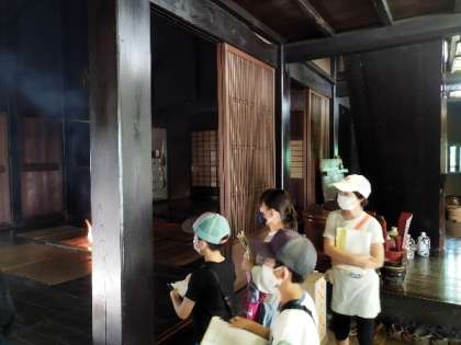 2組さんの見学の様子です。囲炉裏の匂いがいいネって子どもたちが言っていました。落ち着きます。