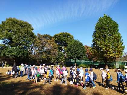 羽根木公園について写真を撮りました。クラス毎に遊びます!カマキリもいました。