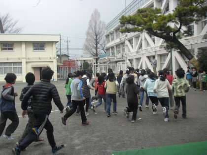 5分間走が始まりました。今日から2月3日(金)まで、20分休みに走ります。自分に合ったペースで走り、体力を高めることがねらいです。みんな寒さに負けずにがんばります。