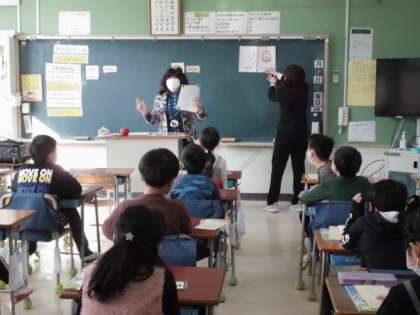 世田谷区英語教育推進アドバイザーのエミリー先生が来校し、3年2組で担任の先生と一緒に外国語活動の授業を行いました。