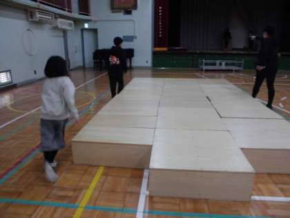 今日は5年生が2月16日から始まる「開校90周年記念 展覧会」の会場準備を行いました。どの子もひな壇やパネルをすすんで運んでくれるので、作業があっという間に終わりました。来年は最高学年。これからの活躍も楽しみです。