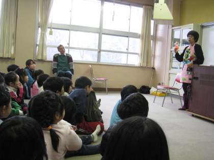 2月23日(木)の3時間目と4時間目に経堂図書館から「お話会」の出前の学習がありました。対象は1年生と2年生で、毎年来て頂いているものです。