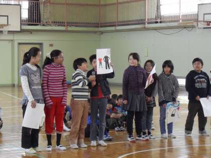 4年生は、「クイズ」と6年生との「縄跳び競争」でした。クイズで出された金川先生の目の良さにはみんなびっくりでした。縄跳び競争ではさすがに6年生。余裕でしたが、4年生の持久力にも目を見張るものがありました。