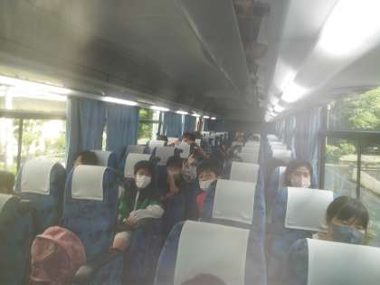 1号車車内の様子です。ドライバーはトッシーさん、ガイドはリカさんです!よろしくお願いします。