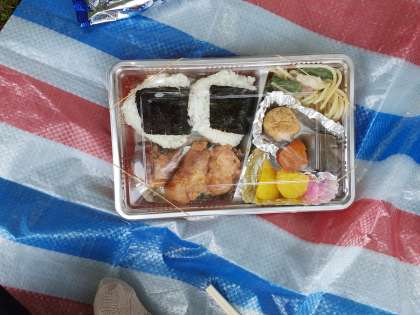 お弁当を食べています。暑いので、20分早く出発します。