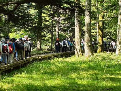 山側 の 木 道 を歩きます
