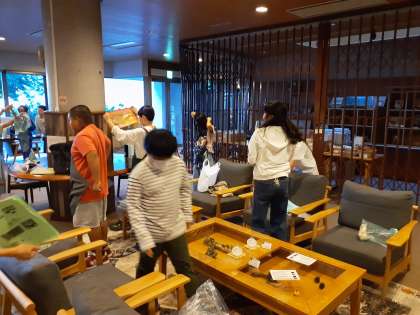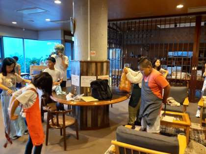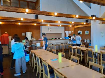 朝ごはんの用意です。食事係の人ありがとうございます
