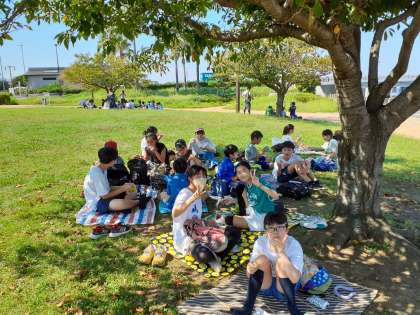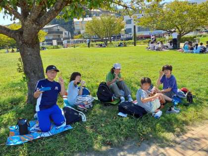 みんな結構疲れています。やっとお弁当です!