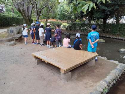 次大夫堀公園に着きました。トイレ休憩です。田んぼもあります。