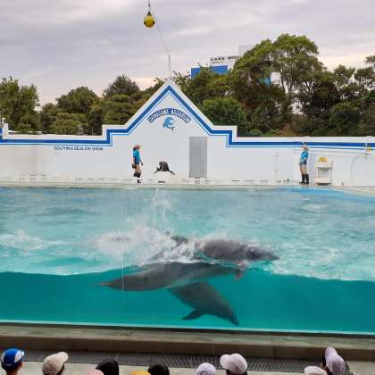 アシカが輪を回しています。