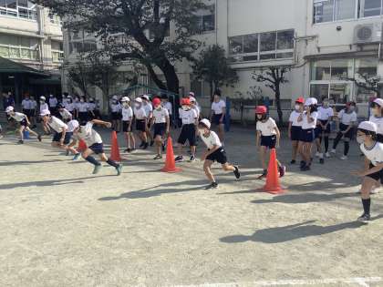 短距離走、ハードル走、走り幅跳びを教わっています。