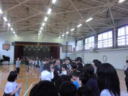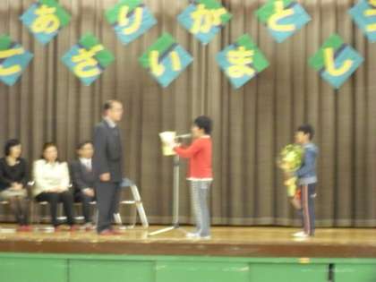 昨年度までで世田谷小学校をさられた先生方や主事さん方に、感謝の気持ちをこめて、お手紙を読んだり、花束を渡したりしました。