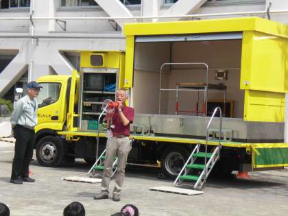 5月8日(火)に5月の避難訓練が行われました。今回は、地震を想定しての避難訓練でした。音にびっくりした人もいましたが、しっかりと避難できました。避難後、3年生と6年生は起震車の体験もしました。震度7の揺れには、ビックリです。