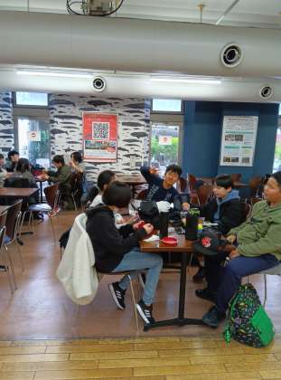 広いので、子どもたちを見失いました。すでにお昼を食べ始めているグループがあります。