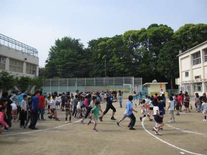 全校児童集会で、「島がしずむぞ!」ゲームをやりました。