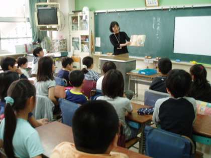 本校では、月に2回子どもたちがとても楽しみにしている水曜日の朝があります。それは、本が大好きな保護者20名くらいが「読み聞かせ」をして下さる朝です。各学年に2〜3名のボランティアさんが、子ども達の実態を考慮して選んだ本を、じっくりと読んで下さるのです。先週、6年生には、流暢に英語の絵本を読んで下さいました。どの学年の子どもたちも心から聞いています。低学年の方では、登場人物になりきって読んで下さる方もいらっしゃって、どの子どもも楽しそうに身を乗り出して聞いていました。