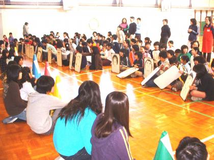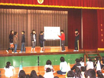3月12日(木)の朝、全校児童による集会が行われました。1〜5年生のみんなで、卒業していく6年生の似顔絵をリレーしながら描きました。6年生の特徴をとらえようとしっかりと顔を見て描いていました。できあがった似顔絵をみた6年生は、ニッコリとした笑顔でうれしそうな表情を見せていました。