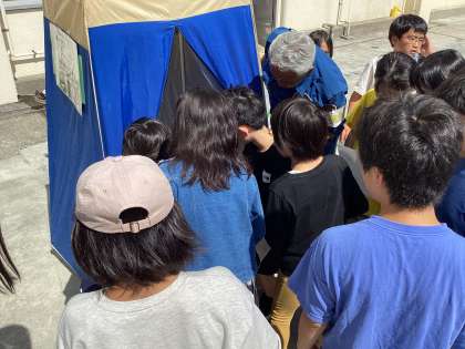 「防災訓練開始、マンホールトイレ」