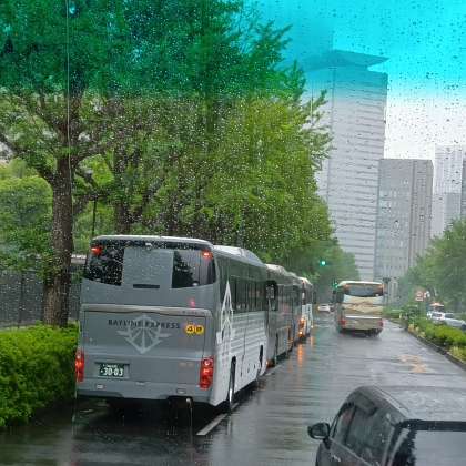 国会着きましたが、たくさんのバスがいます