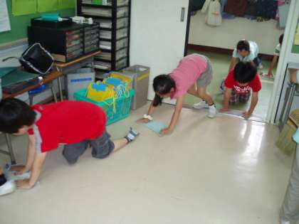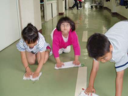 主事さん方の姿、一緒に掃除してくれる先生方の姿を見ているせいか、どのクラスも掃除の時間、一生懸命に行うのです。