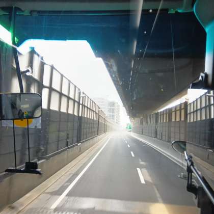 トンネル出ました。 車内は、麦わら…なんて歌詞が流れています やわらかなー