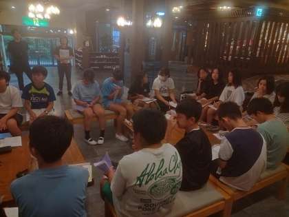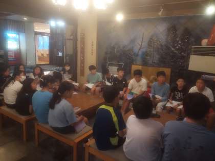 室長会です。班等でまとまって行動できているか振り返っています。
