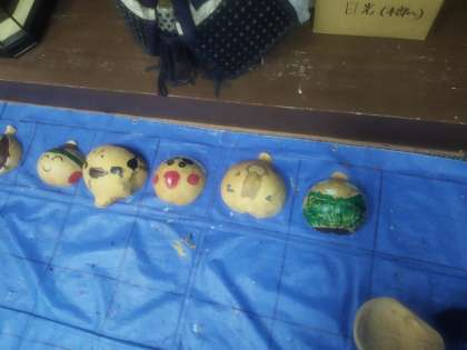 ふくべ細工の様子 完成した子もチラホラ 個性的な作品ばかりで素敵です!