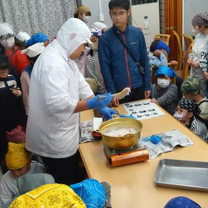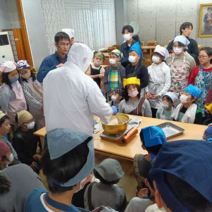 こんにゃくづくりはじまりました。熱心に聞いています。
