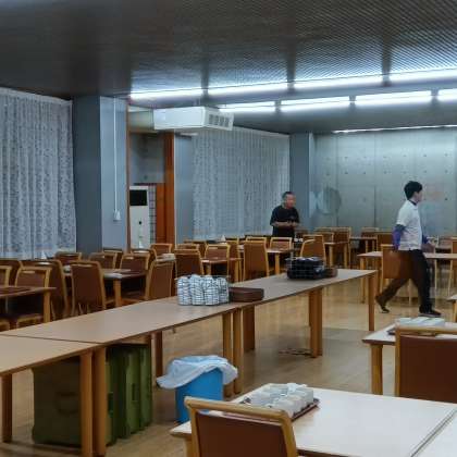 5時からの夕食に向けて補助員さん中心に準備を始めています。