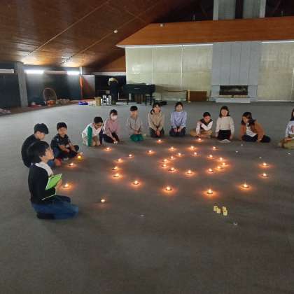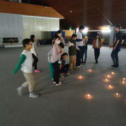 キャンドルファイヤーの様子 素敵な時間になりました!係のみなさんありがとう。最後は、少年時代と世界にひとつだけの花を熱唱しました。絆の火、個性の火、青春の火、3つの火を大切にしよう!