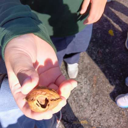村めぐり ネズミが食べたクルミ
