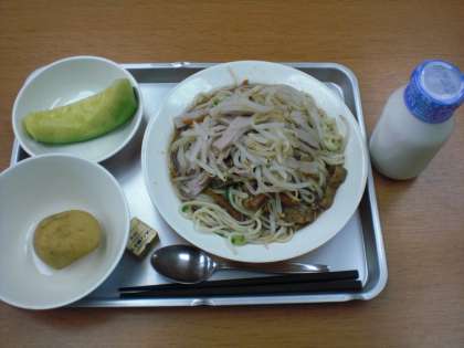 6月25日(月)、今日の献立は、冷し中華、じゃがいものバター焼き、くだもの、牛乳です。