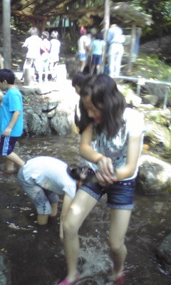 山登りの疲れも感じずに 元気な5年生の子供たちはマスやイワナのつかみ取りを楽しみました。捕まえた時の嬉しさを満面に表していました。