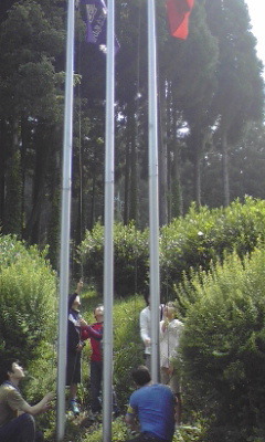 尾山台小学校との閉室式を終えました。二校の校旗も下ろしました。