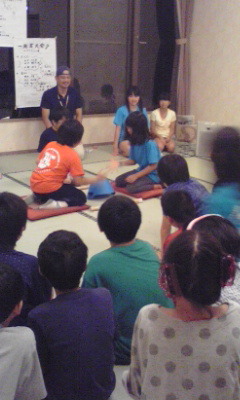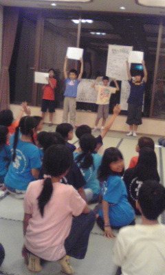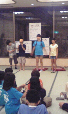 夕食の後は広間でお楽しみ会をしました。生活班ごとに寸劇やクイズ、ダンス等を披露しました。また、一発芸も。芸人の多さに驚きました。