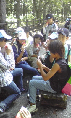3時間歩いてご褒美のリンゴジュースを美味しそうに飲み干しました。