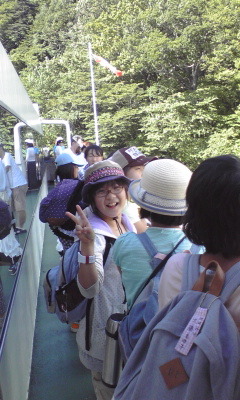 2時50分発の遊覧船に乗りました。最高の天気なので男体山や日光の街並みなどがきれいに見えます。この中禅寺湖は日本で一番標高の高い所に位置する湖です。
