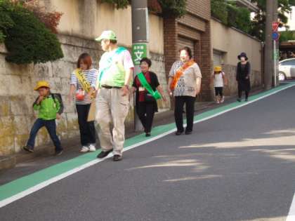 さらに、本校のPTA校外部の皆様が学区域の「こども110番」の張り紙を掲げて下さっているご家庭を1軒1軒回ってご挨拶してくれています。こども110番とは、いざという時に子供が逃げ込むことにご協力して下さっているご家庭のことです。