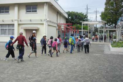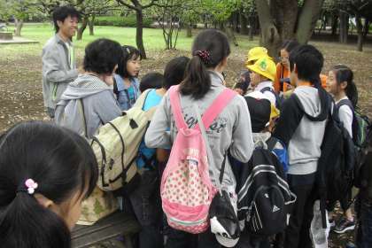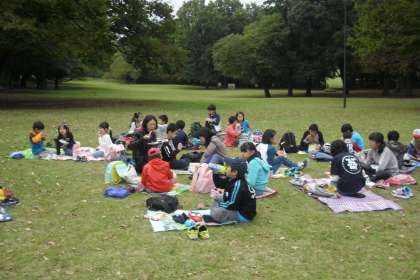 25日、たてわり遠足で砧公園に出かけました。出発時に、小雨が降り出してちょっと心配しましたが、すぐにやんで歩くには丁度良いお天気となりました。5・6年生が下級生の手を引いてお世話をしている姿がとてもほのぼのとしてあたたかい気持ちになりました。