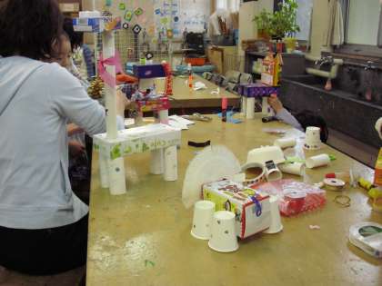 12月7日(金)、8日(土)は展覧会です。1年生の立体作品は、「どうぶつ村のピクニック」です。かわいらしい動物たちが完成しつつあります。