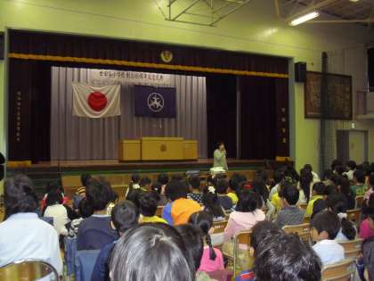 11月に入って初めての全校朝会が、体育館で行われました。校長先生から今週の土曜日に行われる80周年記念式典のお話がありました。そのあと週番の先生から今週の生活目標「ろうかは、静かに右側を歩こう」「あいさつをしよう」についての話がありました。あいさつ運動もはじまり、さわやかな一週間の始りとなりました。今週も元気に過ごしましょう。