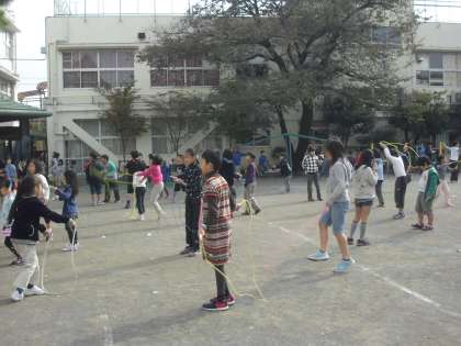 今週はなわとび週間です。20分休みに、全校児童でなわとび練習を行っています。子どもたちは、それぞれに目標をもってがんばっています。友達同士で教え合ったり、励まし合ったりしている姿も見られます。